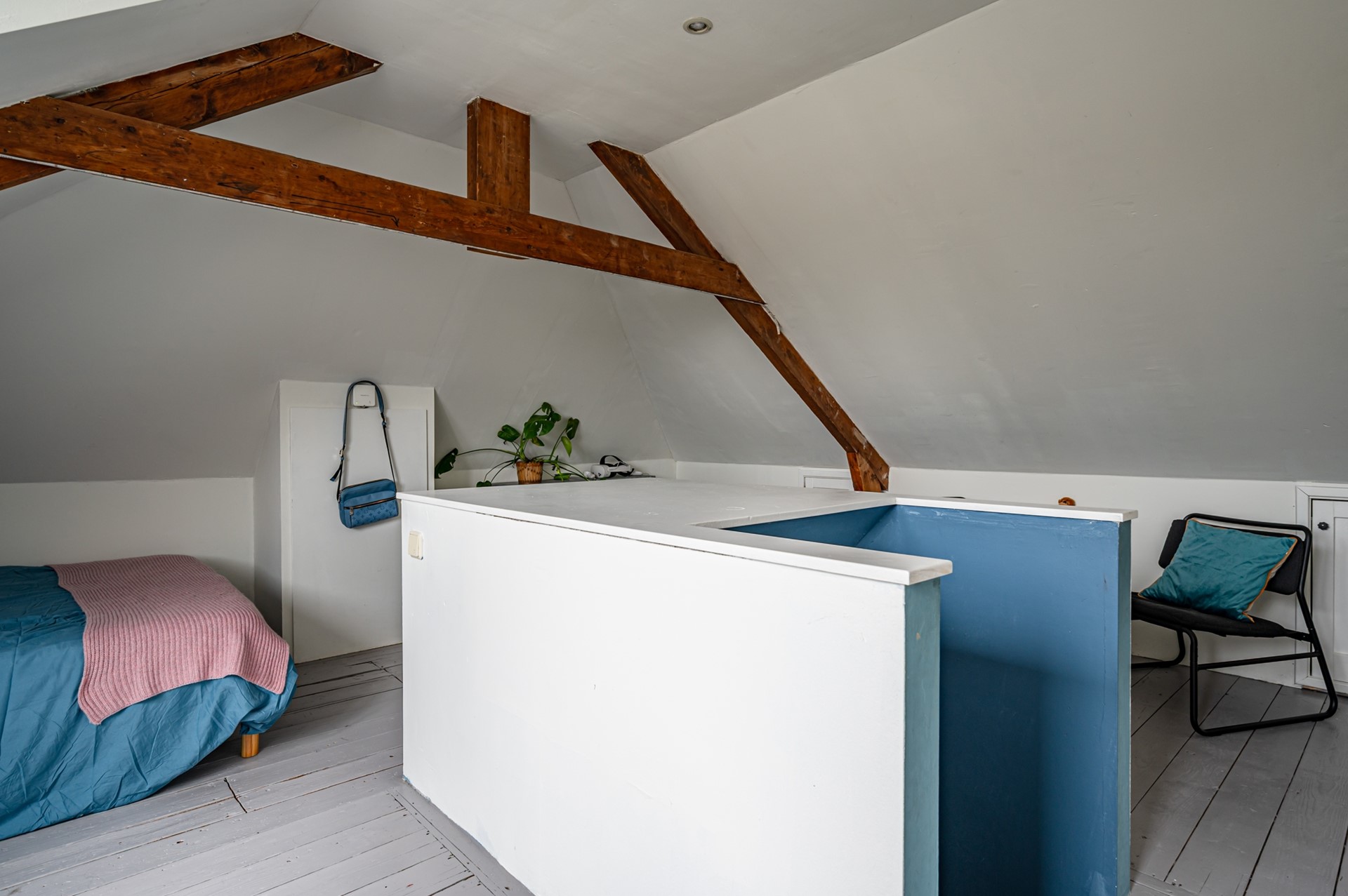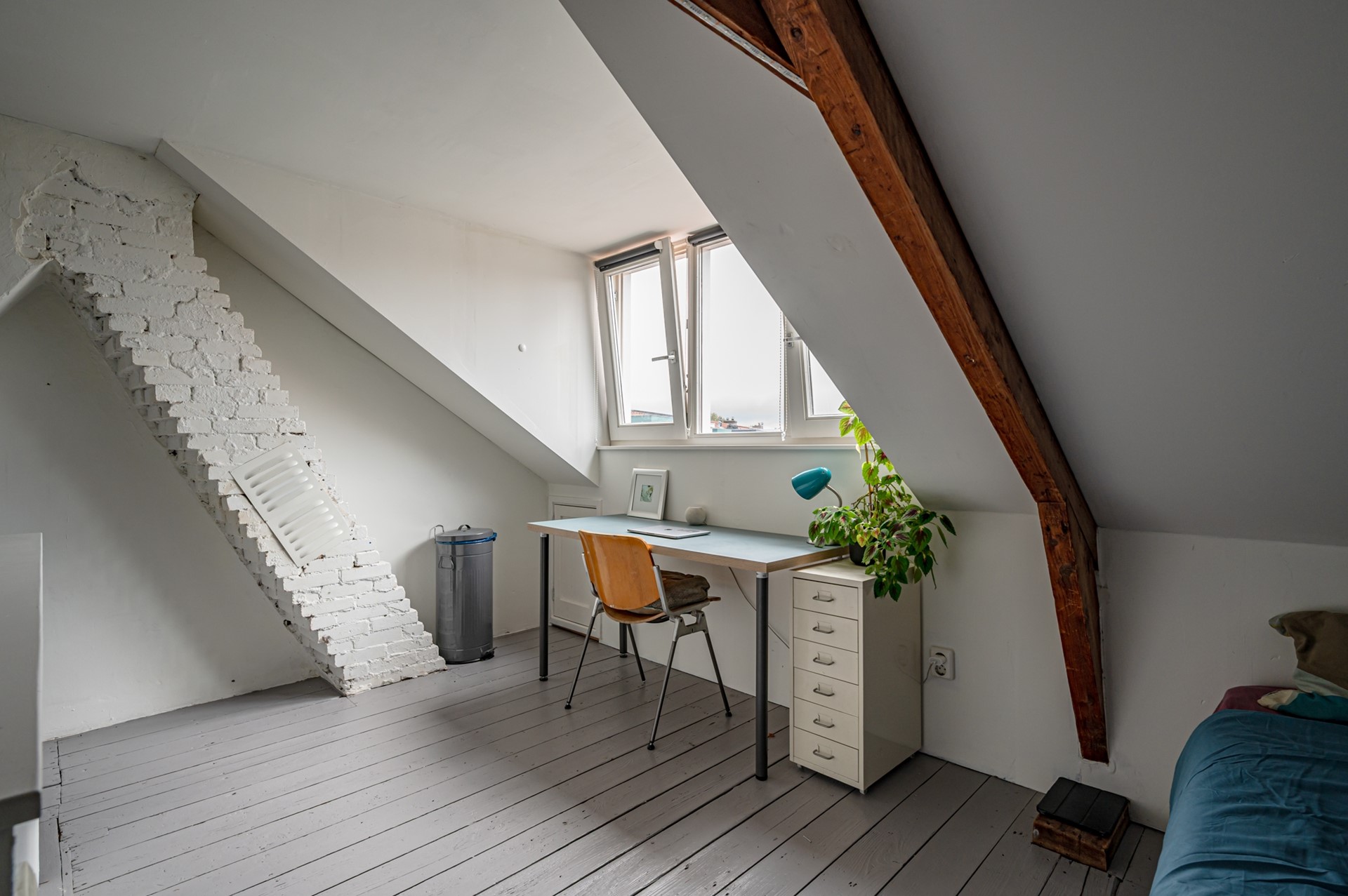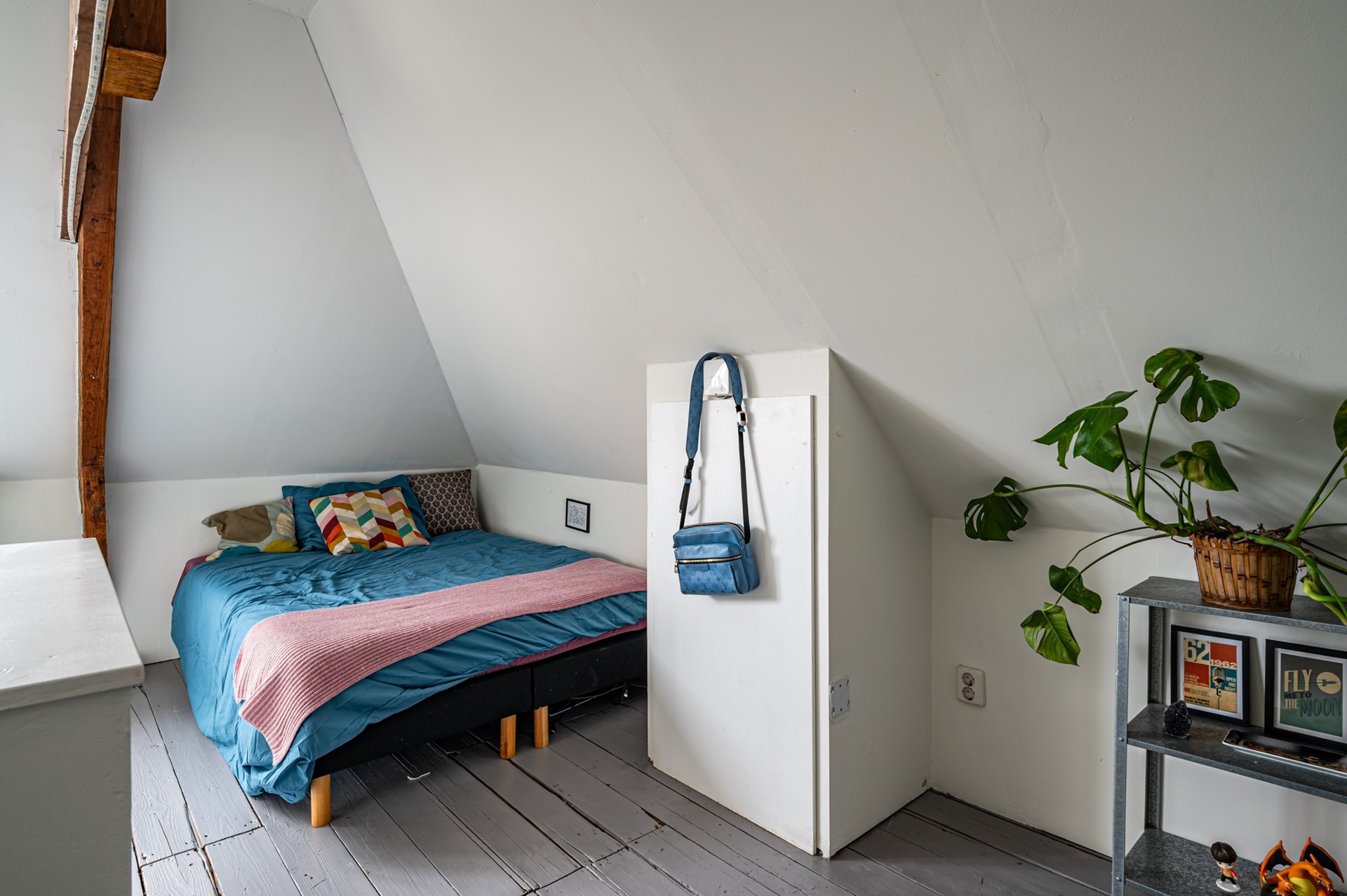 Verrassend ruime (slaap)zolder met dakkapel en cv-opstelling; veel bergruimte.