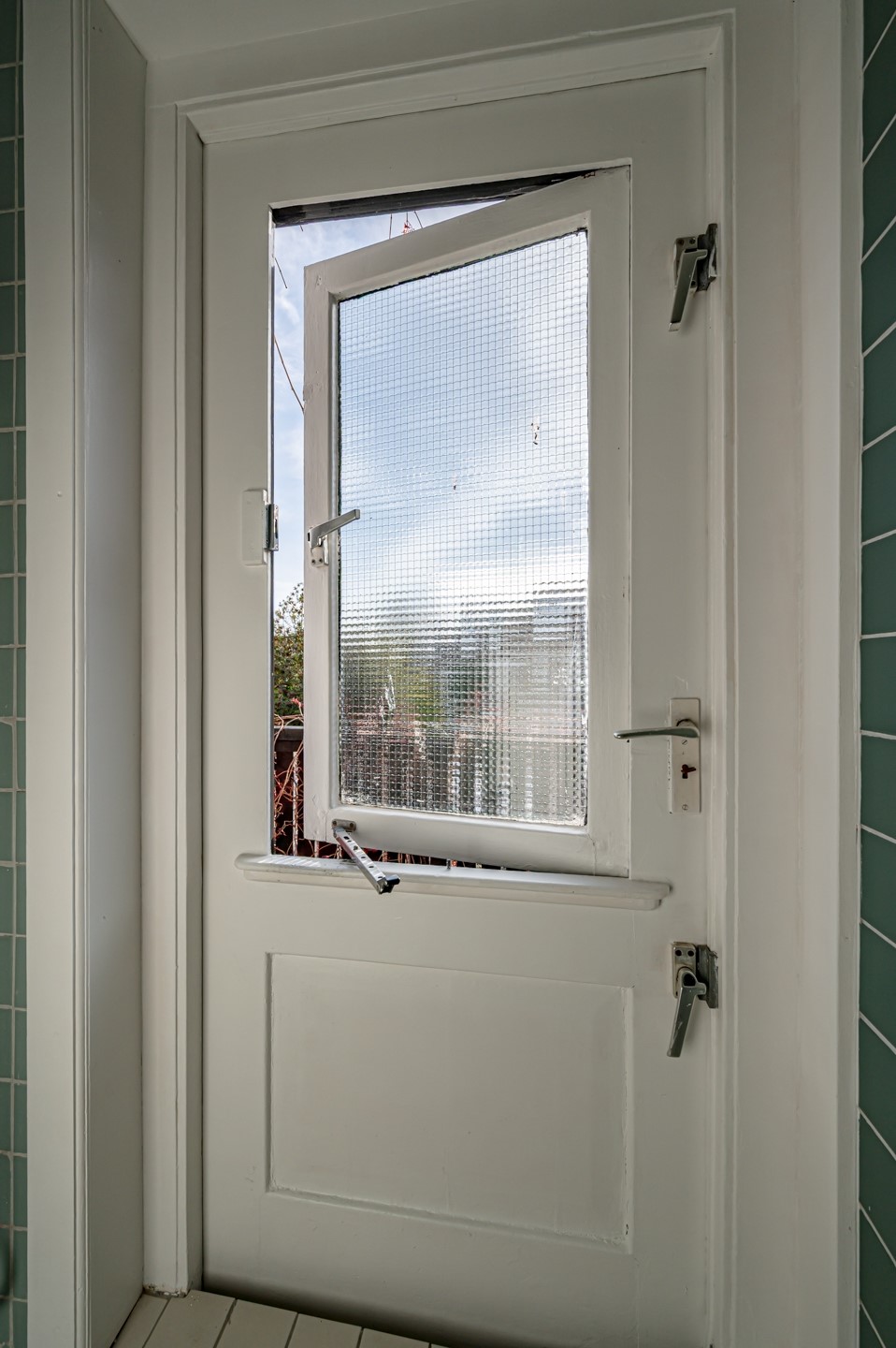 Via de woonkamer toegang tot de tuin met berging en achterom.