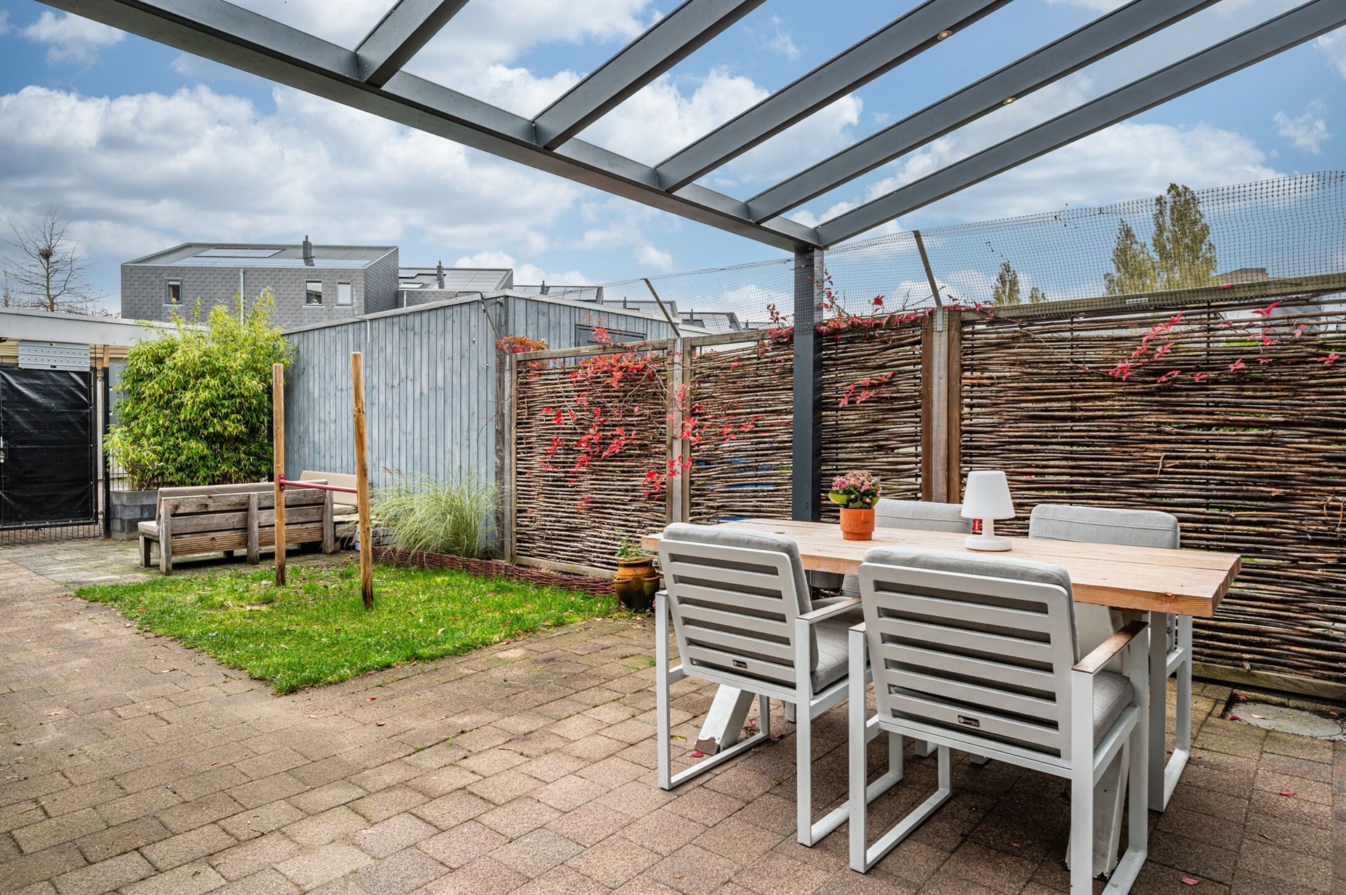 Aan de achterzijde heb je een carport met eigen parkeerplaats: altijd droog uitstappen en nooit zoeken naar een plekje. Vanaf daar stap je zo de achtertuin in,